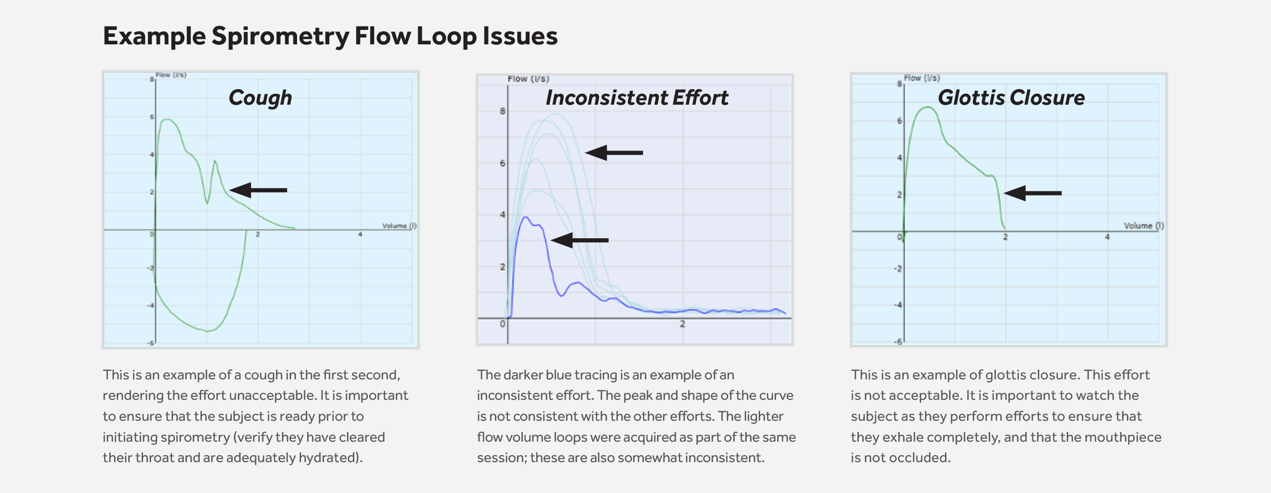·流動(dòng)回路問題:肺活量測(cè)定流動(dòng)回路要求接受過方案培訓(xùn)的注冊(cè)呼吸治療師(RPT)仔細(xì)檢查,才能發(fā)現(xiàn)用力情況的潛在問題