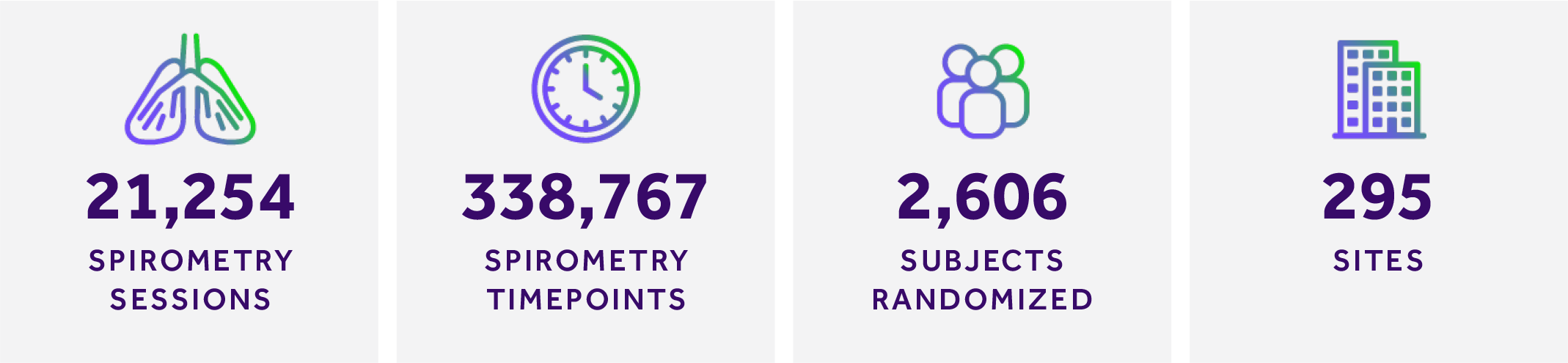 ·肺活量測(cè)定時(shí)間點(diǎn)的數(shù)量:MERIT對(duì)五項(xiàng)研究中的逾338000個(gè)單個(gè)肺活量測(cè)定時(shí)間點(diǎn)數(shù)據(jù)進(jìn)行了閱片
