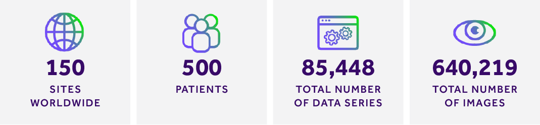 ·數(shù)據(jù)序列(Series)量:該研究中總共處理并審查了82448個數(shù)據(jù)序列。MERIT通過全面、及時的質(zhì)量控制,使合作的閱片中心能夠按照試驗方案快速完成閱片